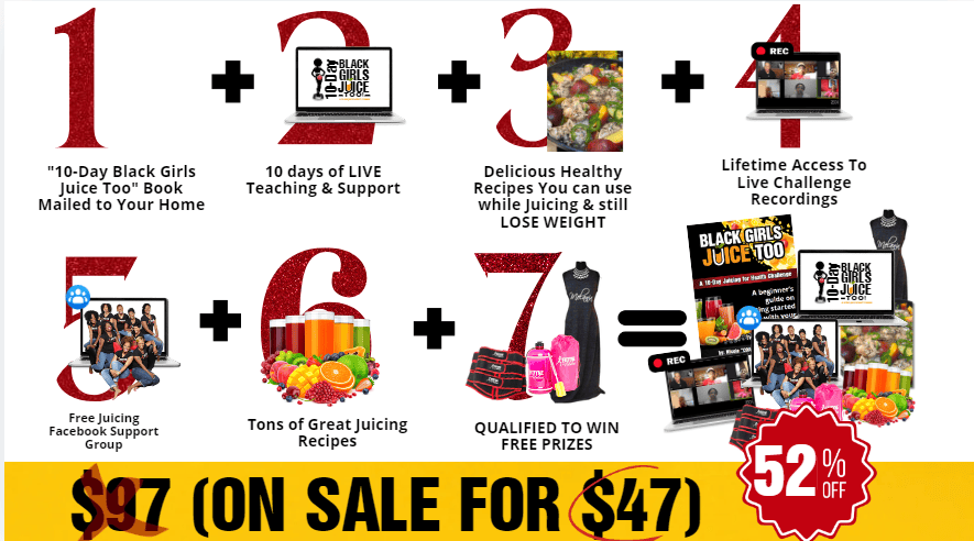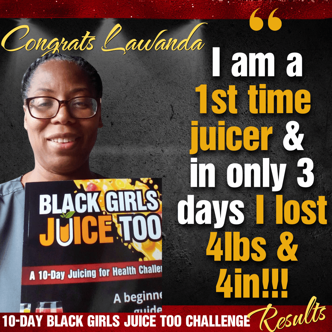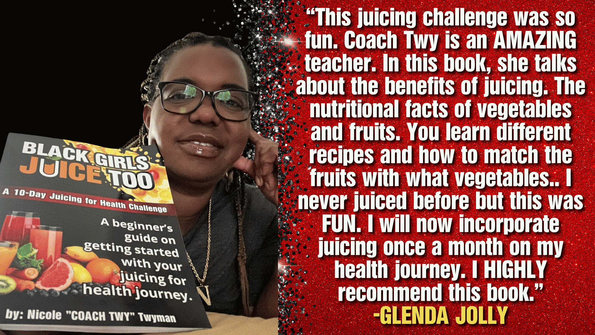 For our divas Coach Twy's new book "Black Girls Juice, Too: A 10-Day Juicing for Health Challenge will be shipped to your home with a discount on shipping.  The Book will be our guide during the challenge and includes 10 Days of education and daily assignments, templates, recipes, meal plans and more!! Signup Now: (Click Here